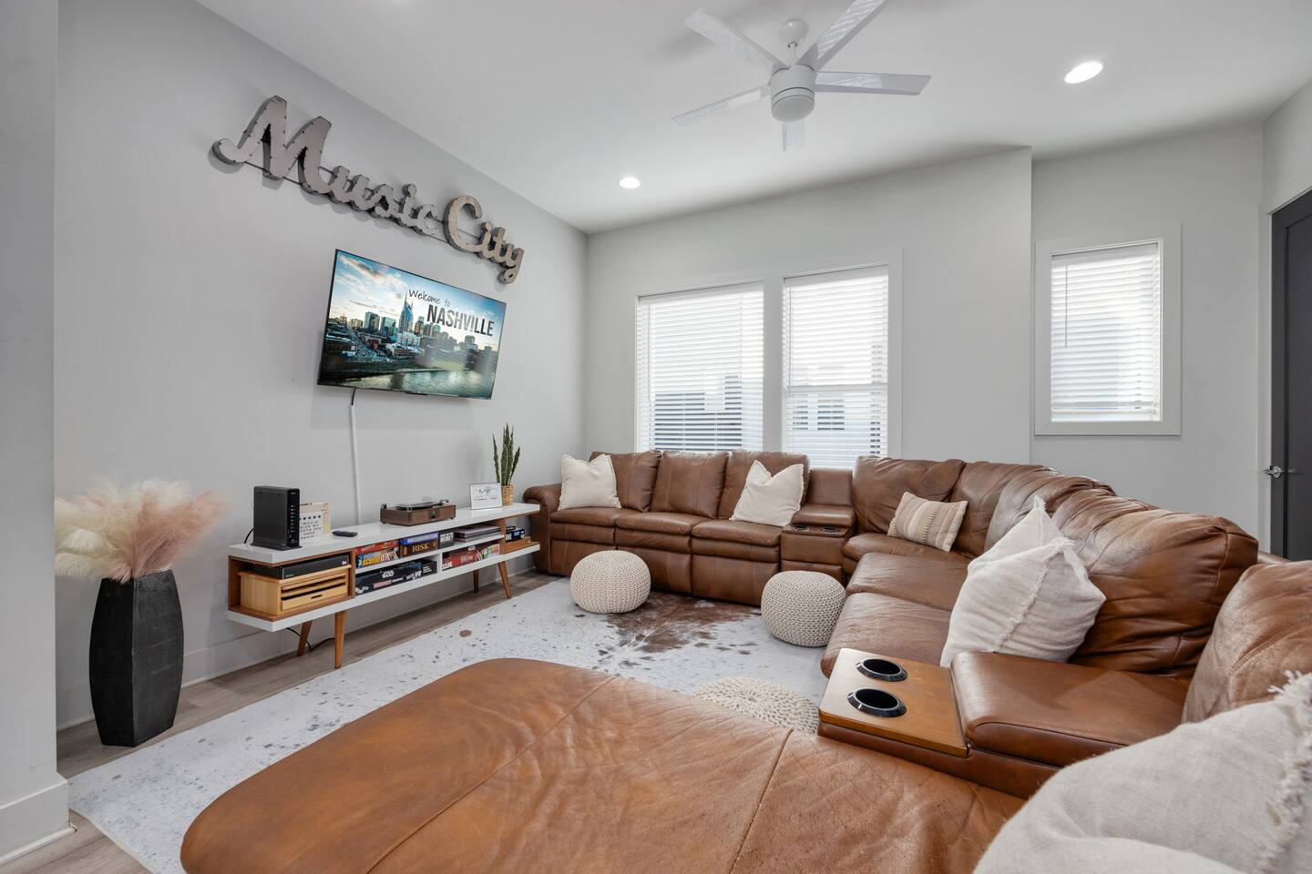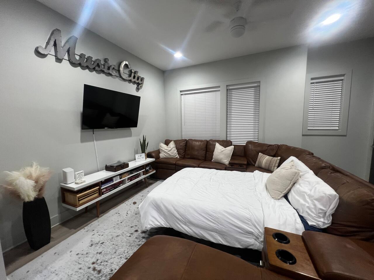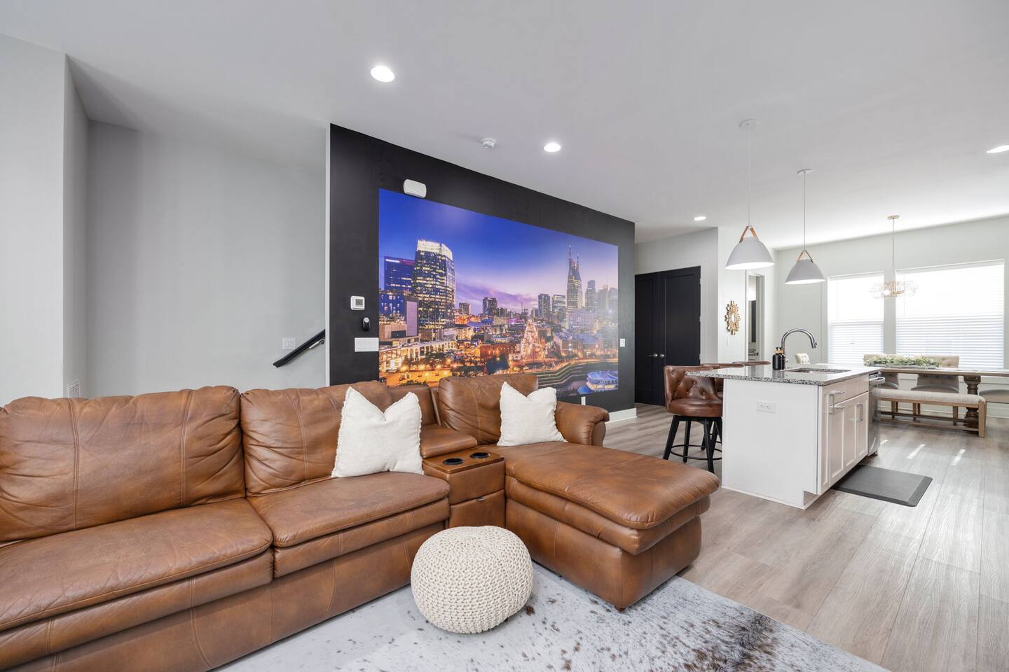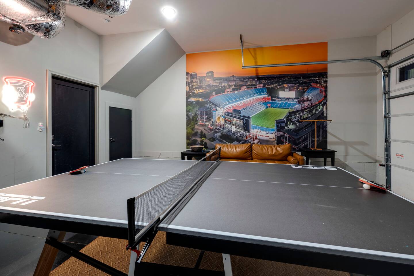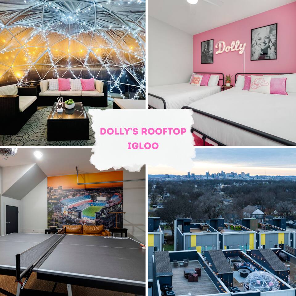 Welcome to Dolly’s Igloo! Only 10 minutes from downtown Nashville, Nissan Stadium, and a quick 15 minutes from the Grand Ole Opry, Dolly’s Igloo is the perfect place to experience Music City in style. Whether you're here for a weekend getaway or a special event, this home is designed to offer comfort, fun, and unforgettable memories. What makes Dolly’s Igloo special? 🎵 Themed Rooms: Stay in Dolly Parton and Johnny Cash rooms, each celebrating country music legends. ❄️ Rooftop Retreat: Cozy up in our heated rooftop igloo, with stunning Nashville skyline views – perfect for evenings under the stars. 🏓 Garage Hangout Spot: The garage features a mural of Nissan Stadium, a ping pong table, beer pong table, TV, comfy couch, and lots of games. 🎶 Vinyl Vibes: Enjoy music on the record player with a selection of vinyl records. 🏙️ Prime Location: Only 10 minutes to downtown, 20 minutes to the airport, and near Nashville’s top attractions! Sleeping Arrangements: • Dolly’s Room: 2 queen beds • Johnny’s Room: 1 queen bed • Master Bedroom: 1 king bed • Living Room: 1 queen pullout couch bed • Additional Sleeping: 2 twin rollaway mattresses and 1 futon Amenities you'll love: • Smart TVs in every bedroom and living room • Hotel-quality linens and plush towels provided • Complimentary toiletries (shampoo, conditioner, body wash, paper towels, and toilet paper) • Stocked kitchen for all your cooking needs • Keurig with K-Cups, creamer, and sugar provided • Washer/dryer with detergent and dryer sheets included • Keyless entry for easy and secure check-in • High-speed Wi-Fi • Outdoor Security Cameras: A Ring front door camera and an exterior camera for added peace of mind during your stay Book your stay at Dolly’s Igloo and make your Nashville experience unforgettable!
